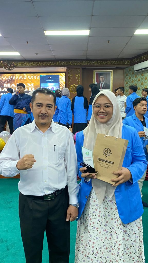 Pekanbaru, 10 Desember 2025 — Norma Yulistri, Mahasiswa Prodi PMI yang telah berhasil mengharumkan nama kampus setelah meraih 1 Silver Medal dan 2 Bronze Medal pada ajang Pekan Ilmiah Nusantara (PIN) 2025 yang diselenggarakan di Malang pada tanggal 15–16 November 2025 lalu. Pada hari Selasa kemarin, 9 Desember 2025 ia resmi menerima Penghargaan Mahasiswa Berprestasi dari UIN Suska Riau, sebagai bentuk apresiasi institusi atas dedikasi dan kontribusi akademiknya. Penghargaan diberikan langsung oleh pimpinan Universita dengan disaksikan para Pimpinan Fakultas Dakwah dan Komunikasi diwakili oleh Wakil Dekan III Bidang Kemahasiswaan dan Kerjasama.